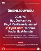 2026 Yılı Hac ön kayıt ve kayıt güncelleme işlemleri vatandaşlarımızdan gelen yoğun talep üzerine 21 Eylül 2025 tarihine kadar uzatıldı. 09.09.2025 2026 Yılı Hac ön kayıt ve kayıt güncelleme işlemleri vatandaşlarımızdan gelen yoğun talep üzerine 21 Eylül 2025 tarihine kadar uzatıldı. Vatandaşlarımız işlemlerini 21 Eylül 2025 tarihine kadar e-Devlet (@ekapi) üzerinden yapabilirler. Detay